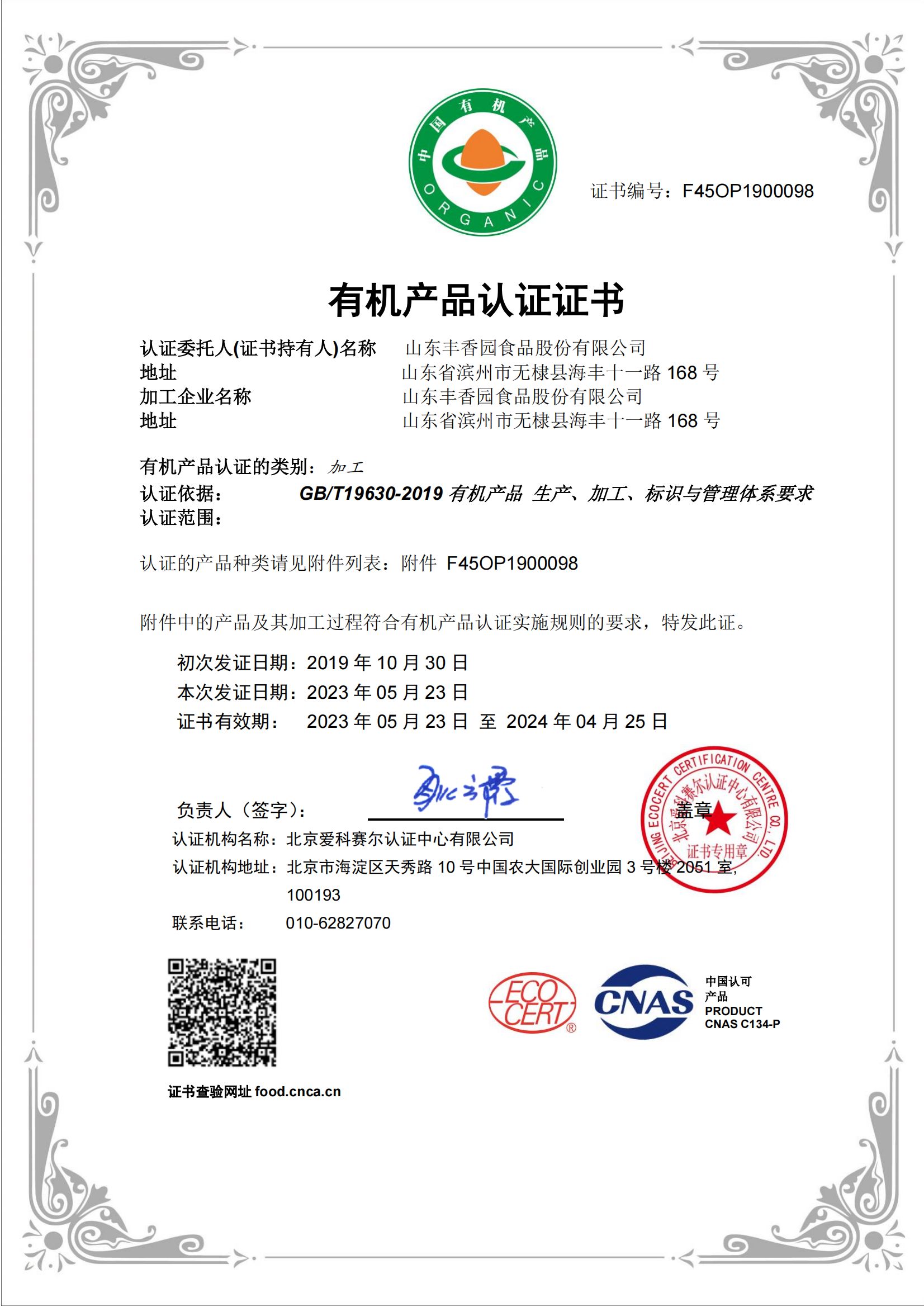 山東豐香園食品股份有限公司位于無棣縣西城工業園,成立于2012年,注冊資本3000萬元,員工60多人,年銷售收入8000多萬元,是“國家高新技術企業”、“中國好糧油”示范企業、“食安山東”示范生產加工企業,公司集綠色、有機芝麻食品標準化、生產加工、研發、出口銷售為一體的山東省農業產業化“重點龍頭企業”。        公司獲得HACCP國際質量體系認證、ISO9001:2015質量管理體系認證,產品獲得美國FDA認證、美國、歐盟有機食品認證、英國BRC體系認證、A級綠色食品認證、GB國標有機食品認證。        公司主要產品有芝麻油、芝麻醬、花生醬、芝麻粉和烘焙芝麻、兒童芝麻食品系列等六大種類上百個品種,產品出口美國、日本、韓國、新加坡、俄羅斯、澳大利亞、美國、等30多個國家。2018-2019年連續兩年芝麻食品出口量排名山東省第三位、濱州市第一位。        山東豐香園食品股份有限公司是國家級高新技術企業,建有省級“一企一技術”研發中心、市級企業技術中心和市級工程實驗室、市級工程技術中心等多個創新平臺,擁有發明專利2項,實用新型專利21項,先后獲得省級“專精特新”中小企業、市級農業產業化聯合體、科技型中小企業、濱州市級瞪羚企業、市級“一企一技術”創新企業和濱州市新興產業“白名單”企業等榮譽稱號。